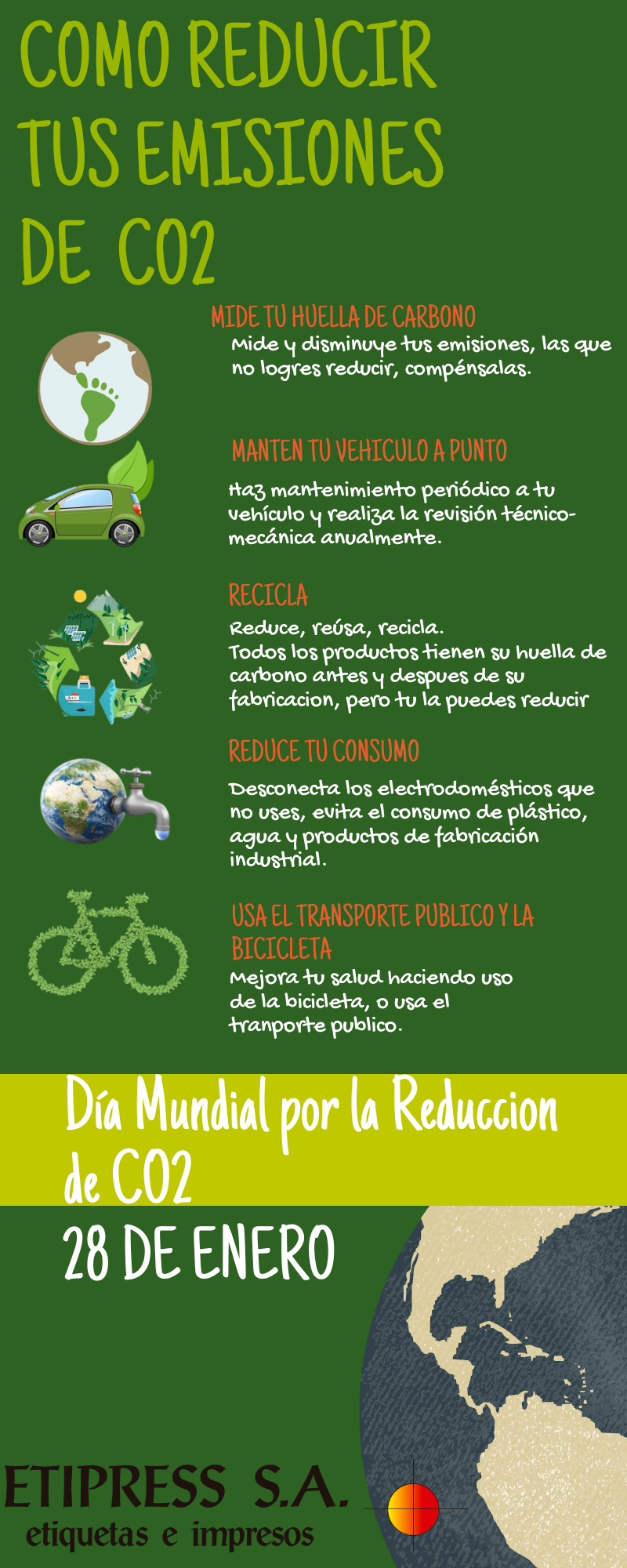 El 28 de enero de todos los años se conmemora el Día Mundial por la Reducción de las Emisiones de CO2, por disposición de la ONU, como un día clave para la generación de conciencia ambiental y la adaptación al cambio climático.